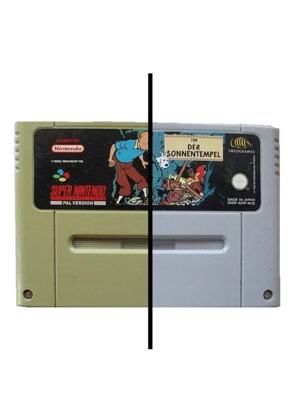 Vergilbte SNES-Module sind ein bekanntes Problem bei älteren Spielen. Durch Alterung und UV-Einwirkung verfärbt sich das Kunststoffgehäuse mit der Zeit.